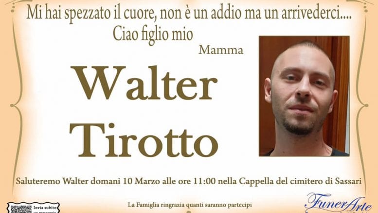 Saluteremo Walter mercoledì 10 marzo alle ore 11 nella cappella del cimitero di Sassari.