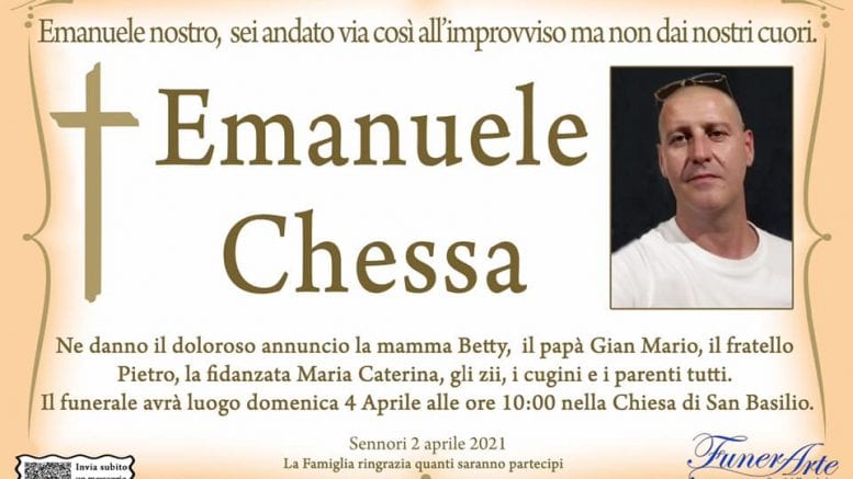 Il funerale avrà luogo domenica 4 aprile alle ore 10 nella chiesa di San Basilio a Sennori.