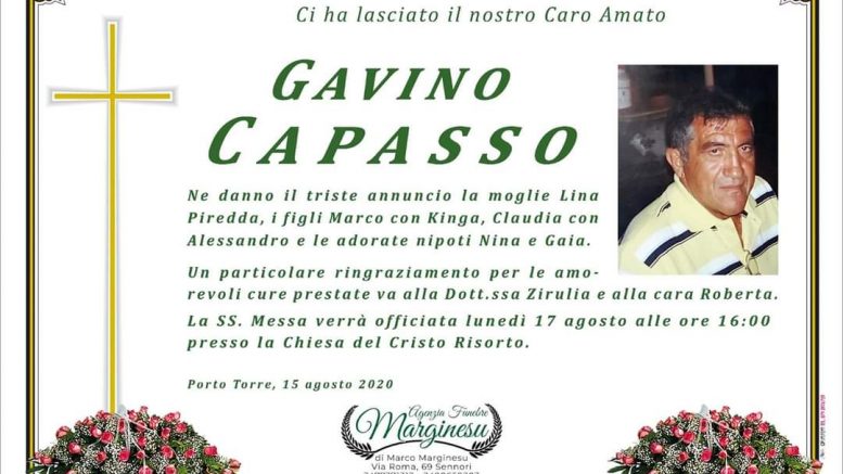 Ne danno il triste annuncio la moglie Lina Piredda, i figli Marco con Kinga, Claudia con Alessandro e le adorate nipoti Nina e Gaia.