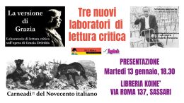 Martedì 13 gennaio alle 18.30 si terrà l’incontro di presentazione dei tre laboratori di lettura critica ideati e condotti da Alessandro Marongiu e organizzati in…