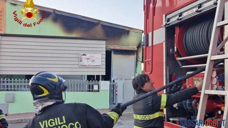 L’incendio è scoppiato alle 14 nella zona artigianale di Ozieri.