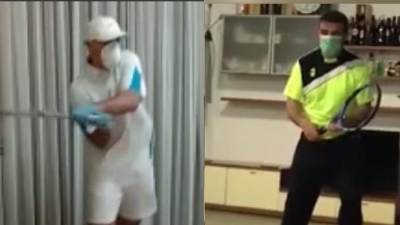 Massimiliano ha 43 anni e fa l’elettricista. Fabrizio di anni ne ha 42 ed era una magazziniere prima della crisi, appassionato di video. Amici da una vita, hanno pensato che la loro passione per il tennis non potesse conoscere i limiti della quarantena. E così calzoncini e racchetta, tra il tavolino e la televisione volteggiano le palline.