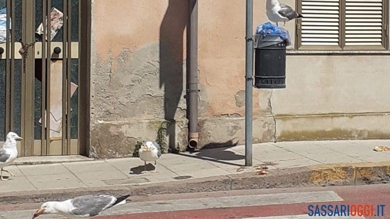 La spazzatura rappresenta una vera e propria manna per i gabbiani di Porto Torres. Dal centro al lungomare sono numerosi i volatili che assaltano i cestini per portar via quel che c’è dentro.