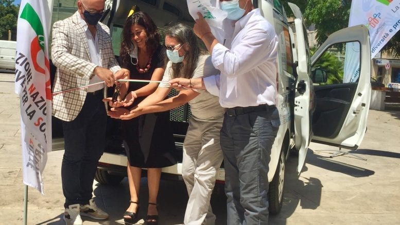 Un automezzo nuovo di zecca a Porto Torres per continuare a garantire l’accesso ai servizi sanitari agli utenti che non sono in grado di raggiungere autonomamente il poliambulatorio di Andriolu. Il taxi solidale è pronto a rimettersi in moto: trenta aziende hanno finanziato l’acquisto del furgone dotato di pedana per i disabili. La consegna delle chiavi è avvenuta questa mattina, in Piazza Umberto I, alla presenza del sindaco Sean Wheeler, dell’Assessora alle Politiche sociali, Rosella Nuvoli, dei referenti della società Pmg Italia, dei titolari delle imprese che hanno sostenuto economicamente l’acquisto del mezzo e dei volontari dell’associazione Anteas che svolgono il servizio.