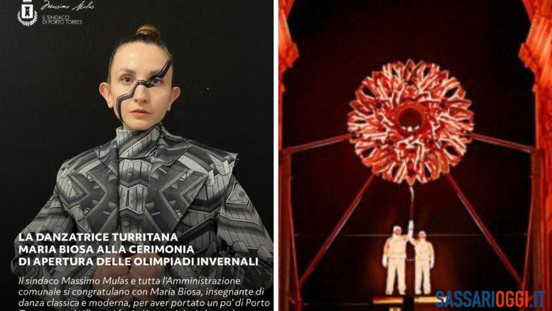 “La danzatrice turritana Maria Biosa alla cerimonia di apertura delle Olimpiadi invernali”, annuncia il Comune di Porto Torres. “Il sindaco Massimo Mulas e tutta l’Amministrazione comunale si congratulano con Maria Biosa, insegnante di danza classica e moderna, per aver portato un po’ di Porto Torres sotto i riflettori fra i più prestigiosi al mondo. La danzatrice turritana, infatti, ha preso parte al cast della cerimonia di apertura delle Olimpiadi invernali allo stadio San Siro di Milano, evento di risonanza internazionale con la direzione artistica di Marco Balich e Simone Ferrara, e ha ballato sulla coreografia firmata da Adriano Bolognino”.