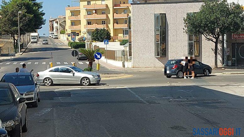 Scontro tra due auto nella rotatoria di Porto Torres.