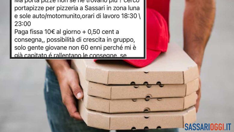 “Cerco portapizze in zona Luna e Sole a 10 euro al giorno + 0,50 a consegne”. Recita così l’annuncio di lavoro che è comparso su alcuni gruppi social a Sassari, da parte di un proprietario di una pizzeria che lamentava la difficoltà di trovare dipendenti in città.