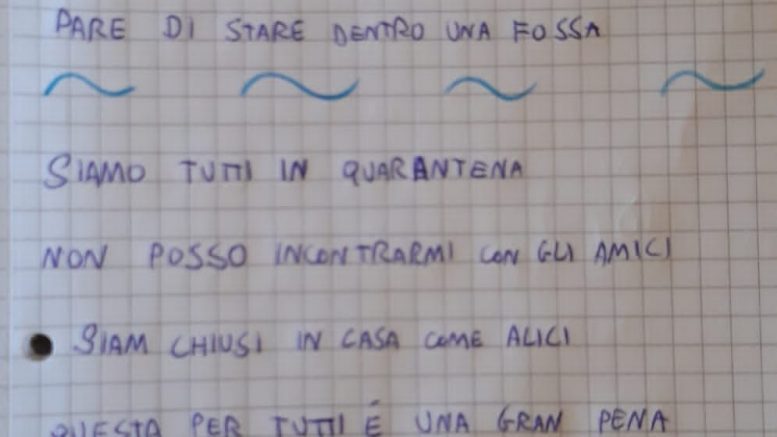 Nei suoi versi c’è tutta la speranza e la voglia di normalità di un bambino. Nella sua filastrocca le rime danno ritmo alle parole e si legge tutta d’un fiato.