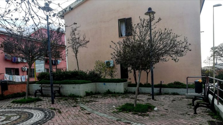 Una piazzetta in completo stato di abbandono nella parte alta di via Pietro Micca a Sassari. L’ennesimo caso di incuria e degrado che affligge il quartiere di Monte Rosello.
