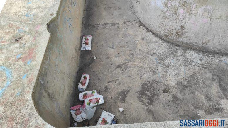 Dovrebbe essere uno dei luoghi più caratteristici di Sassari, ma da tempo la Fontana delle Conce è diventata una discarica a cielo aperto. Nella struttura, ogni giorno, sostano diversi senzatetto e persone con problemi di dipendenza. Soprattutto dagli alcolici, visto che laddove dovrebbe star l’acqua, sono presenti numerosi cartoni di vino. Ma anche siringhe e ogni genere di spazzatura.