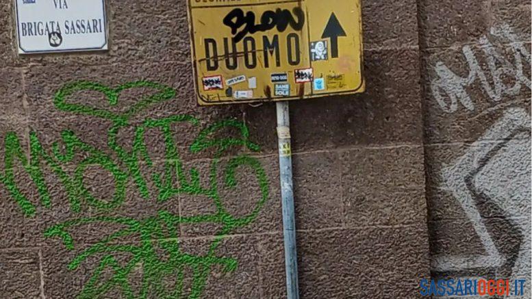 La segnaletica non mostra più nulla di utile. I graffiti coprono ogni parola. La superficie scolorita racconta anni di incuria. Nessuna indicazione chiara guida chi arriva per la prima volta in città. Il simbolo di uno dei luoghi più rappresentativi della storia sassarese finisce così nell’ombra.