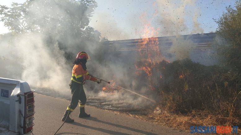 L’incendio nella zona di Monserrato a Sassari.