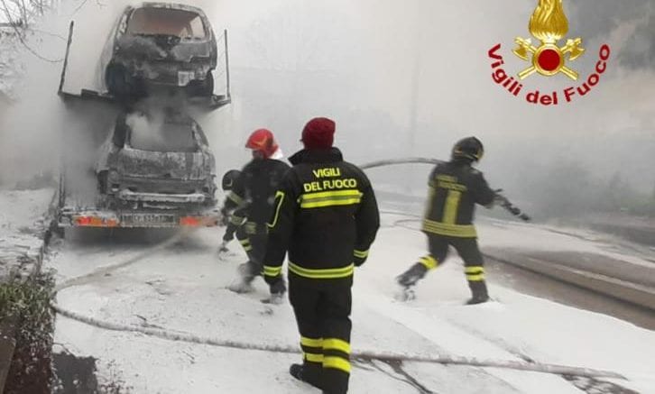 Nel frattempo, sono sopraggiunte le squadre dei Vigili del fuoco di Sassari con una squadra ed un supporto botte, che hanno spento l’incendio ed impedito che le fiamme si propagassero alla cabina ed alle ruote della bisarca.