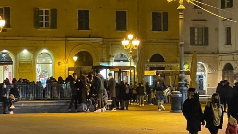 “Non siamo 60enni”, ci spiega un trio, infilzando un’oliva e fissando l’orologio: sono le 17. Mascherine poche, parecchie abbassate, qualche ffp2, alcune griffate jetlag. Spostandosi in piazza d’Italia la situazione non cambia, a parte l’avvento di qualche commensale più attempato. Una coppia di 50enni assale un prosecco e un cardinale. Anche a loro verrà a mancare la socialità. Bevono pure per dimenticare il 50% di affari in meno, dall’arrivo del covid, nel settore dell’edilizia in cui lavorano. “Ormai siamo abituate a queste chiusure”, ci informano due ragazze in un locale di via Roma. All’indifferenza però fanno subentrare le avvisaglie di un futuro buio e non si tratta solo della luce che, alle 17.30, comincia a calare.