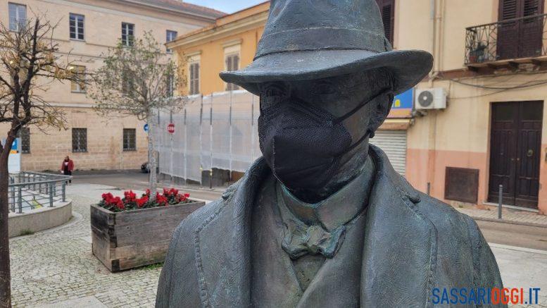 Una mascherina sul volto della statua di Enrico Costa. È apparsa questa mattina in piazza Fiume a Sassari dove, dal dicembre del 2018, si trova l’omaggio in bronzo a grandezza naturale del celebre scrittore e giornalista. La copertura, rigorosamente nera e del tipo ffp2, arriva fino agli occhi del monumento quasi in ironica ubbidienza alle restrizioni e prescrizioni degli ultimi decreti governativi. Da capire se il gesto sia ascrivibile alla goliardia o si voglia invece comunicare altro.