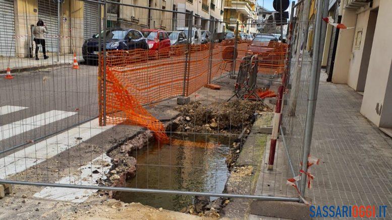 Nel tratto finale di via Pasubio, all’incrocio con via Savoia a Sassari, è stata individuata una particolarità piuttosto inusuale: una sorta di “piscina” lunga circa 3 metri, larga uno e profonda mezzo metro nel punto centrale. La struttura, colma d’acqua, è stata notata giovedì scorso e da allora è rimasta inalterata, senza interventi di risoluzione o segnalazioni ufficiali.