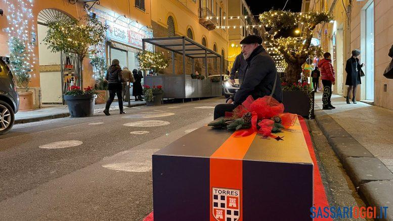 “Frammenti di Sardegna – Arte, Musica e Cultura in Centro Cavour” continua e raccontarsi nel cuore pulsante della città di Sassari mentre l’Associazione ccn Centro Cavour si veste da Babbo Natale e porta in dono a via Cavour un sacco intero di splendidi regali impacchettati ad arte da un innovativo “artigiano” cittadino – l’azienda Character di Antonello Fadda – con i colori della città (il rosso e il blu) e gli stemmi di due amati e identitaria simboli dello sport sassarese: la Torres e la Dinamo.