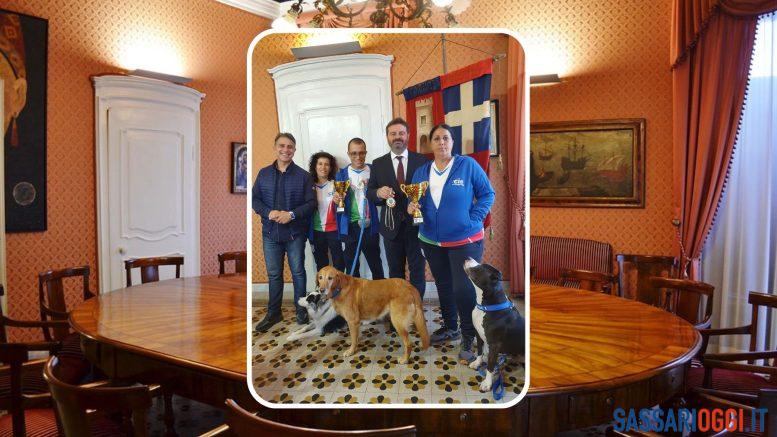 Due campioni di paragility e agility coi loro cani dal sindaco di Sassari