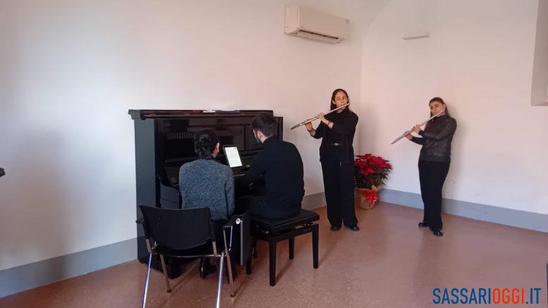 “Durante la cerimonia, alcuni studenti del Conservatorio hanno eseguito brani di grande raffinatezza: Anna Deriu, laureanda in Pianoforte nella classe del Prof. Mariano Meloni, ha interpretato tre brani di Claude Debussy: “Valse Romantique”, “Notturno” e “Refletsdans l’eau” tratto da Estampes. Gianmichele Milia, recente laureato in Pianoforte, accompagnato dalle flautiste Aurora Bellu ed Eleonora Denegri, ha eseguito “Oblivion” e “Libertango” di Astor Piazzolla. Il pianoforte di colore nero, un pregiato modello verticale realizzato il 21 novembre 1935 dalla ditta Ing. C. Berra di Torino (azienda fondata nel 1819), è dotato di una meccanica L. Rener- Stuttgart (n. matricola 312173)”.