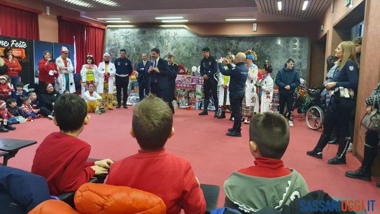 Grazie alla Polizia locale di Sassari, centinaia di bambine e bambini hanno ricevuto un dono. E consegnato proprio da Babbo Natale. Anche nella sua terza edizione è stata un successo la gara di solidarietà lanciata dal Comando di via Carlo Felice: grazie alla sensibilità di privati cittadini e di tante aziende sassaresi, sono stati raccolti centinaia di giochi nuovi che oggi, venerdì 20 dicembre, sono stati consegnati ad altrettanti bambini. A partire dalle 10, nella sala Langiu, alla presenza del sindaco Giuseppe Mascia, del comandante Gianni Serra e di giocatori della Dinamo e della Torres, Babbo Natale in persona ha consegnato giochi, biciclette e tutto ciò che è stato raccolto grazie alla generosità di privati, imprenditori locali e degli stessi agenti della Polizia locale, sempre in prima linea nelle attività di solidarietà.