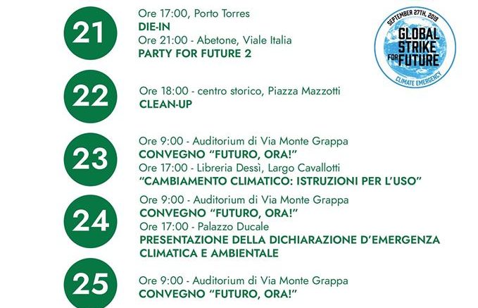 Questo avrà luogo venerdì 20 Settembre dalle 17 alle 19, simultaneamente in Piazza Tola e in prossimità del Museo Sanna. Un evento di grande impatto, che vedrà i militanti del movimento chiedere immediate e concrete azioni al fine di risolvere la crisi climatica.