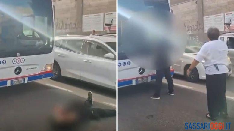 Prima si sdraia per strada, poi si mette davanti al parabrezza per fermare un autobus, ma l’intervento dei passanti risolve la questione a Sassari. Un breve video che circola sui social mostra la singolare protesta di un sassarese. La scena si svolge alla fermata del pullman davanti alla Casa della fraterna solidarietà, in corso Margherita di Savoia.