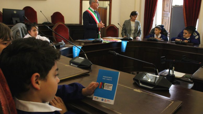 Al termine della mattinata, il primo cittadino ha timbrato e firmato tutti i passaporti dei diritti dei bambini, elaborati dall’Unicef.