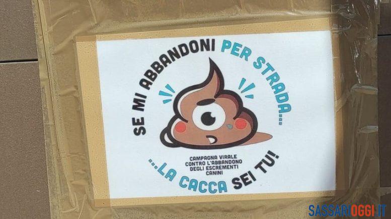 Per questo motivo alcuni residenti in via Cervi, nel quartiere di Monte Rosello, hanno pensato bene di stampare un messaggio chiaro e inequivocabile: “Se mi abbandoni per strada… la cacca sei tu!“.