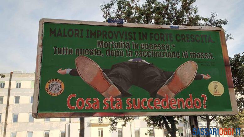 In particolare, un mega manifesto è stato collocato a pochi passi dal Policlinico Sassarese, alimentando il dibattito. La scritta che campeggia sul manifesto afferma: “Malori improvvisi in forte crescita. Mortalità in eccesso. Tutto questo, dopo la vaccinazione di massa. Cosa sta succedendo?“.