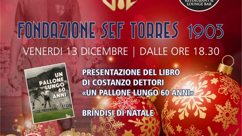 A lui, alla sua simpatia e alla sua autenticità sarà dedicato quest’anno il tradizionale brindisi organizzato dalla Fondazione Sef Torres 1903. Dettori sarà protagonista di “Natale rossoblù”, il consueto scambio d’auguri di fine anno tra i soci e gli amici della Fondazione che raggruppa varie anime del tifo torresino a supporto di iniziative nel campo sociale, artistico, culturale e formativo, in nome dei principi e dei valori che da sempre ispirano la Torres e la sua storia. L’appuntamento è per venerdì 13 dicembre alle 18 e 30 al Cafè Set di via Roma 4, a Sassari. Modererà l’incontro Francesco Pinna, storica firma del giornalismo “torresino”.