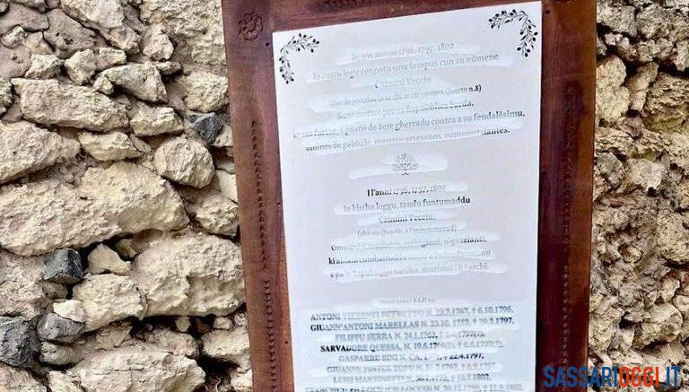 Una mano anonima ha vandalizzato la targa, posta a Sassari lo scorso 28 aprile, in memoria degli 8 rivoluzionari angioyani impiccati a causa delle loro lotta per la Repubblica sarda libera da Savoia e feudatari. Sa Domo de Totus, insieme a Piantumiamo, Arvures e Assemblea Natzionale Sarda aveva pulito la parte aperta al pubblico dell’ex orto botanico, in via Repubblica romana, ormai trasformato in una discarica a cielo aperto.