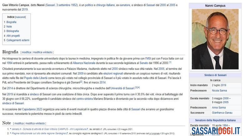 Su Wikipedia l’ironia sul sindaco di Sassari, Nanni Campus.
