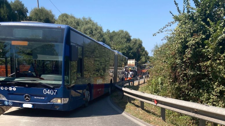 All’altezza della curva centrale il mezzo è rimasto bloccato a causa del restringimento della carreggiata. La situazione si è risolta, non senza difficoltà, in pochi minuti. E i passeggeri hanno potuto continuare serenamente il loro viaggio.