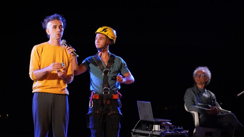 Dal movimento acrobatico all’interno di un cerchio gigante allo slacciarsi le scarpe facendo roteare al contempo diverse palline con le mani, nel corso dello spettacolo sono state tante le prove di abilità molto gradite e applauditissime dagli spettatori. Le performance sono state impreziosite dall’accompagnamento musicale dal vivo di Pino Basile, per una produzione Spellbound realizzata con il contributo del Ministero della Cultura, in cui a condividere lo spazio sono un musicista sperimentale e un circense sperimentatore.