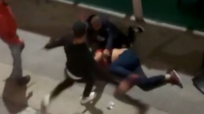 La scena è stata ripresa da numerosi smartphone, e nelle immagini si vedono alcune persone, senza mascherina, urlare contro un uomo. Poco dopo, lo stesso è stato raggiunto da un violento ceffone per poi cadere a terra.