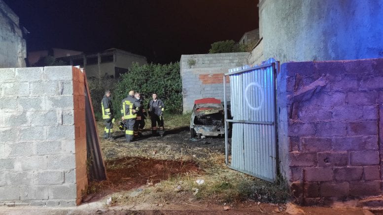 Auto in fiamme, nella notte, in via Sant’Anna a Sorso. Poco prima delle 23, da un cortile a pochi passi dalla storica chiesetta, le fiamme sono divampate avvolgendo completamente una vettura e lambendo l’altra che si trovava a pochi metri di distanza.