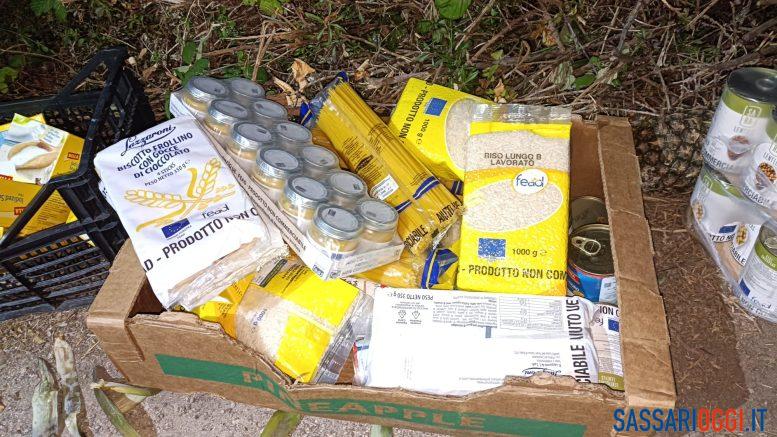 I pacchi alimentari abbandonati a Sorso.