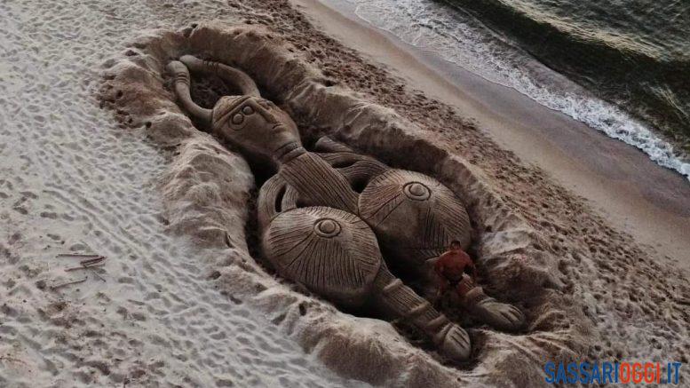 La nuova opera in sabbia di Nicola Urru a Platamona.