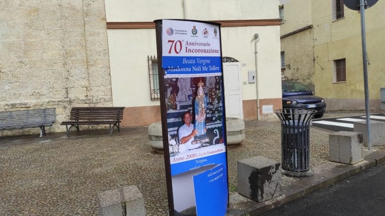 Atto sacrilego ai danni di uno dei totem dedicato alla Madonna “Noli Me Tollere” a Sorso. In via Cappuccini, a pochi passi dalla chiesetta di Santa Croce, la raffigurazione mariana è stata devastata.