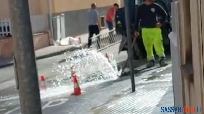 Si rompe un tubo dell’acqua durante i lavori a Sorso.